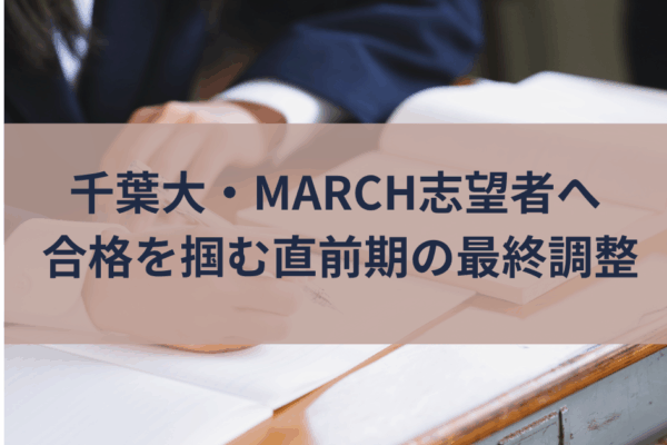 千葉大・MARCH志望者向け直前対策。1月末から本番までにやるべきこと、やってはいけないことを整理。過去問・頻出分野・時間配分の最終調整を解説。