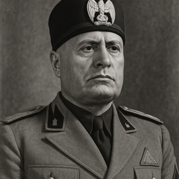 ベニート・ムッソリーニ(Benito Mussolini, 1883–1945)は、イタリアの政治家・独裁者で、1922年から1943年にかけてイタリア王国の首相として実権を握り、ファシズム体制を築いた人物です。