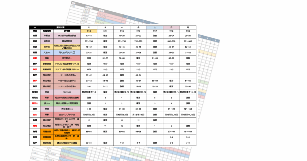 「どの科目を、いつまでに、どこまで仕上げるか」