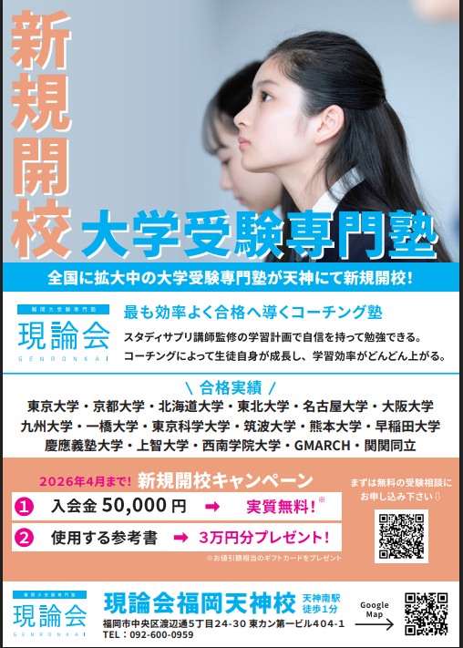 【最大8万円分還元!】現論会 福岡天神校・新規開校キャンペーンのお知らせ(2026年4月末まで)