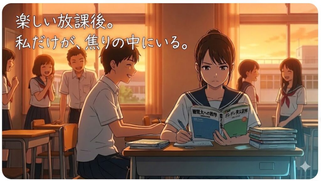 クラスの多くの人が目指す大学のレベルと、あなたの目指す難関大のレベルに差がある場合、学校の授業の進度や課題の量だけでは、目標に届かない可能性があります。 難関大合格を掴み取るためには、勇気を出して「学校の基準」から一歩外に出る覚悟が必要です。