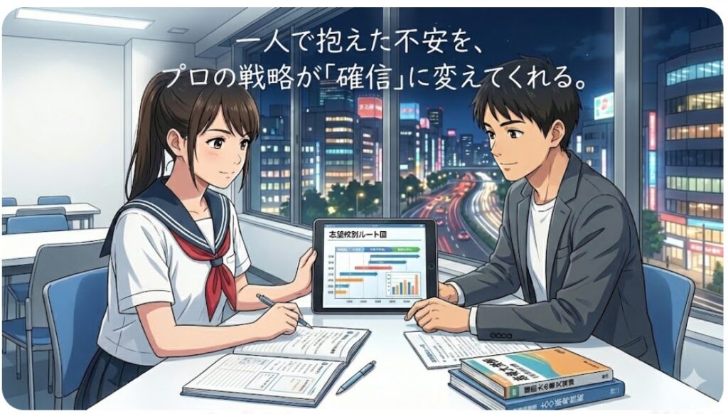 周りが中堅大学を志望する中で、さらに高い目標を掲げるのは孤独を感じるかもしれません。 だからこそ、学校の外に「難関大合格の基準」を常に示してくれる存在が必要です。高い基準を持つコーチと毎週接することで、あなたの視座は自然と引き上げられます。
