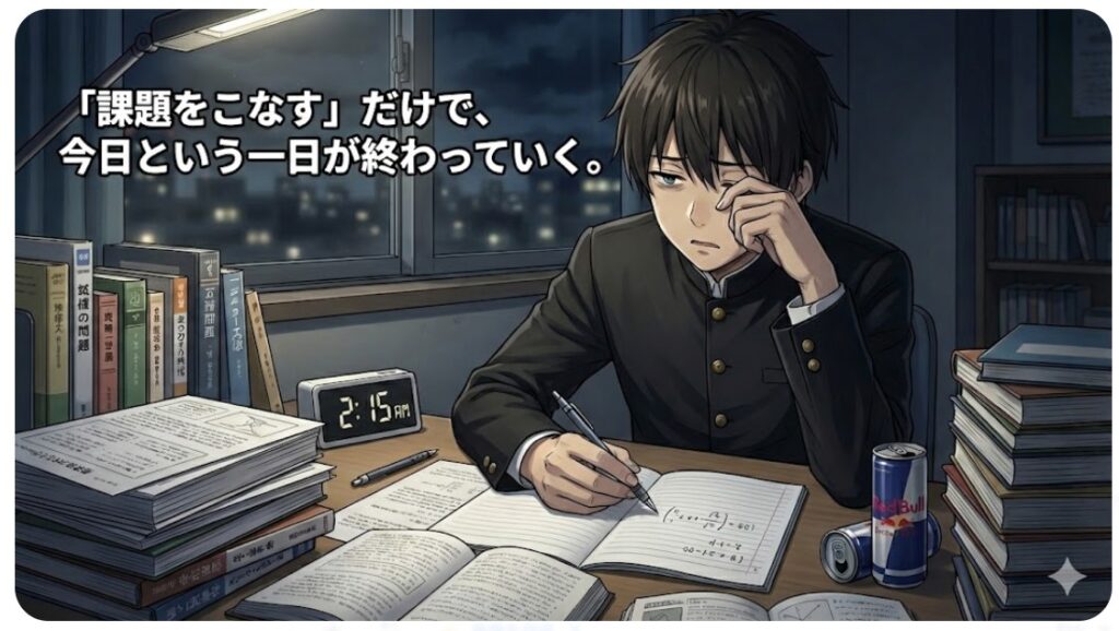 もちろん、与えられたことをやり遂げる責任感は素晴らしいものです。 しかし、気づけば「課題を終わらせること」自体が目的になってしまい、一番重要な「自分の志望校に受かるための勉強」が後回しになっていませんか?