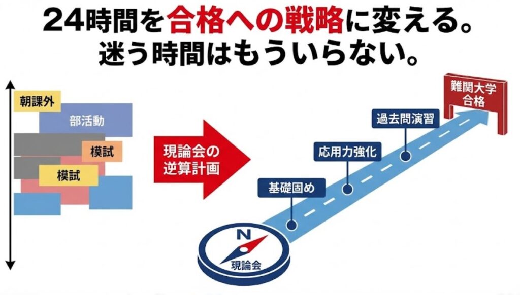 そこで今回は、**「なぜ頑張っているのに伸びないのか?」という原因を深掘りし、現論会が提唱する「逆転合格の処方箋」**を具体的にお伝えします。