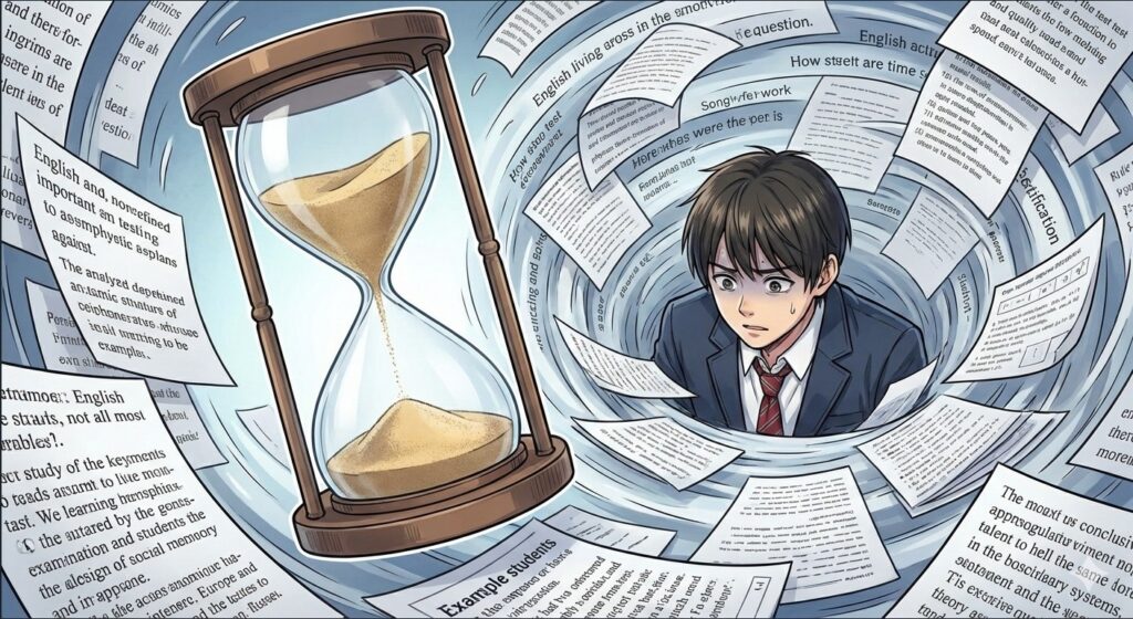 共通テストの長文を制限時間内に読み切るには、1分間に約150語を処理し続ける必要があります。一文を読んで「この文法は何だっけ?」「この単語の意味は…」と考えている時点で、タイムオーバー確定です。単語と文法を「無意識レベル」で使いこなせる基礎力があって初めて、共通テスト特有の情報処理の土俵に立てるのです。