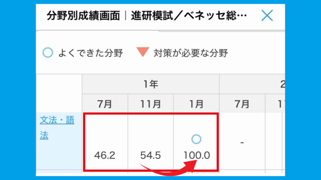 📷模試の成績変化(英文法:50% → 100%!)