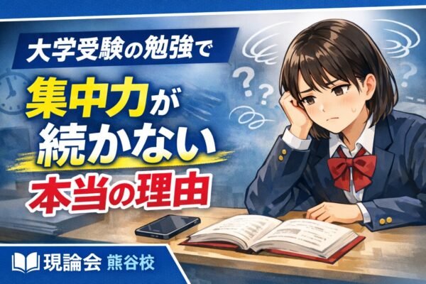 はじめに|「集中できない」のは努力不足ではない 大学受験を目指す多くの高校生・浪人生が、 といった悩みを抱えています。 しかし、はっきり言えるのは、集中力が続かない原因は「根性」や「やる気」の問題ではありません。 多くの […]
