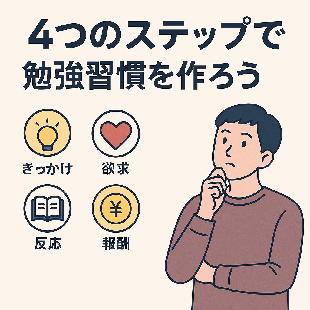 今回は、習慣形成をシンプルに4つのステップに分けて解説し、実際にどのように受験勉強や生活に応用できるのかを考えていきます。