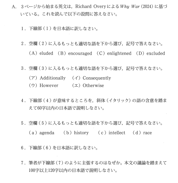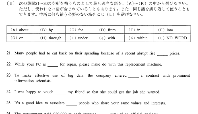 短い長文が約7個出題される。誤文訂正も毎年出題される。