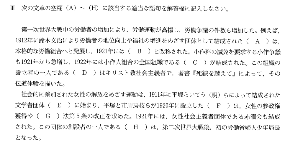 また、世界史はほとんどが1問1答であり、日本史も一般的な問題で、ひねくれた問題ではないです。
