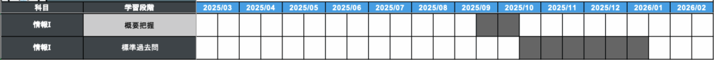 まずは、いつまでに基礎知識のインプットを終え、いつから過去問演習に入るかという年間計画を立てましょう。情報Iは共通テスト直前の演習で伸びやすいため、他の主要科目の基礎が終わった秋以降に本格的な演習期間を設けるのが理想的です。