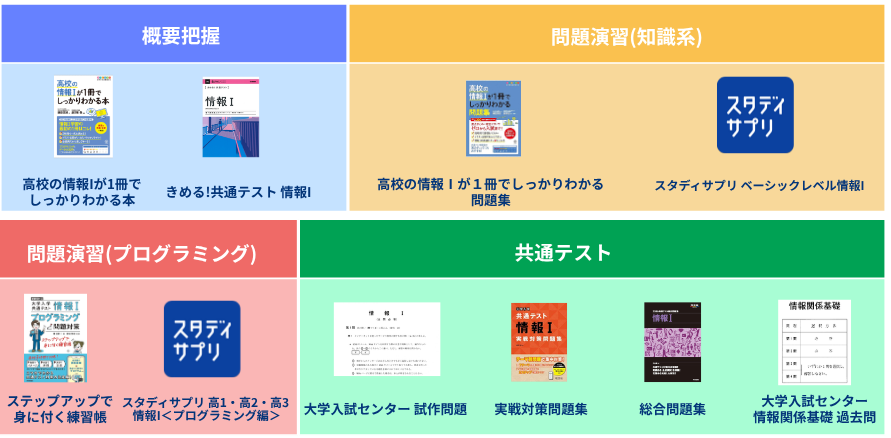 情報Iは、理科や社会と同様に「インプット」と「アウトプット」のバランスが重要です。特に、どの分野を何を重視して学習するかによって、参考書・問題集の選び方が変わってきます。
