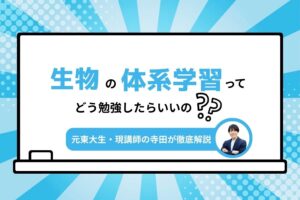 また、体系学習の勉強に取り組む前に、生物の勉強法の全体像がわからないという人は下記の記事を参考にしてみてください!