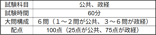 配点は、公共分野が25点、政経分野が75点となっており、政経の比重が大きくなっています。