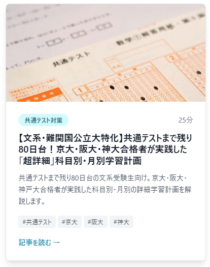 【文系・難関国公立大特化】共通テストまで残り80日台!京大・阪大・神大合格者が実践した科目別・月別学習計画