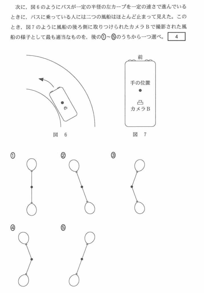 出題内容:質量の違いによる浮力と慣性力の違いを考察する問題