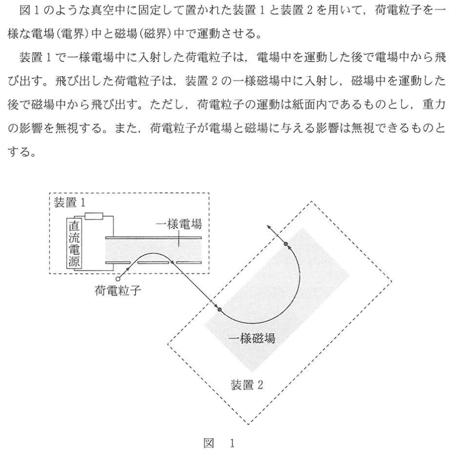 出題内容:一様磁場による荷電粒子の等速円運動の問題