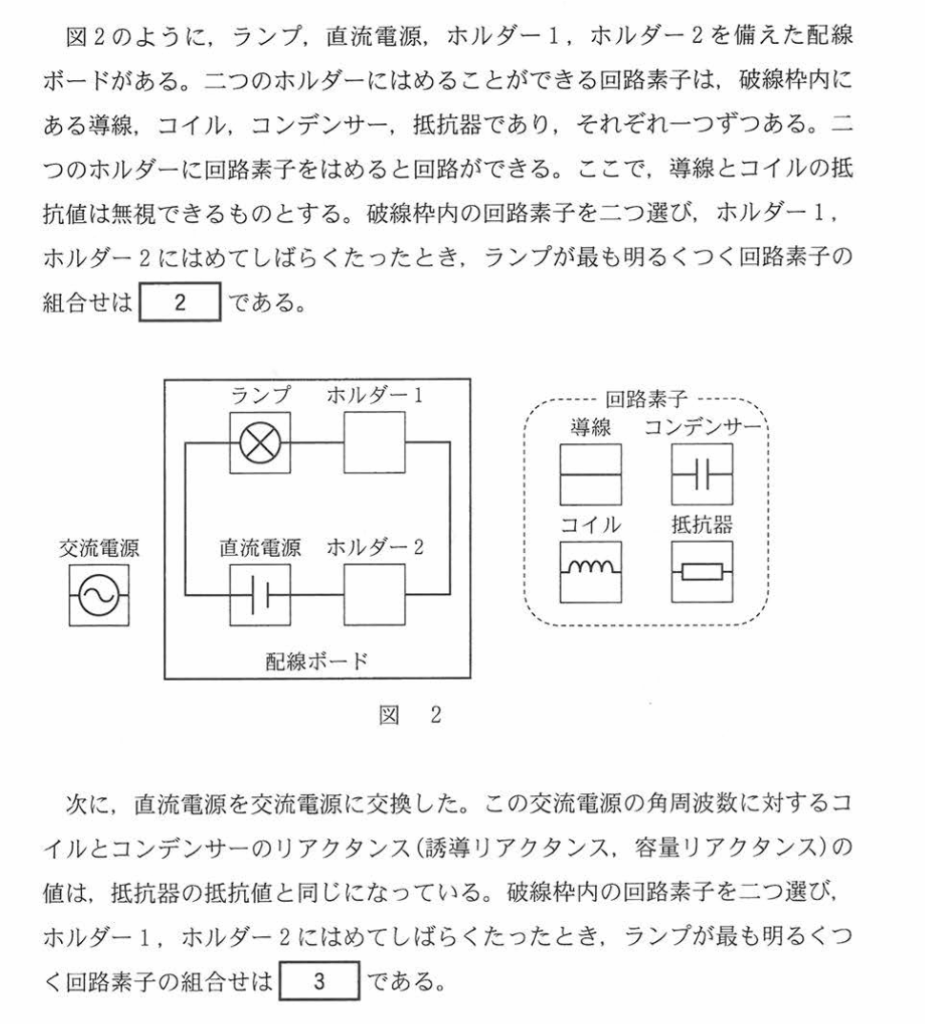出題内容:ランプを明るくするための回路素子を選択する問題